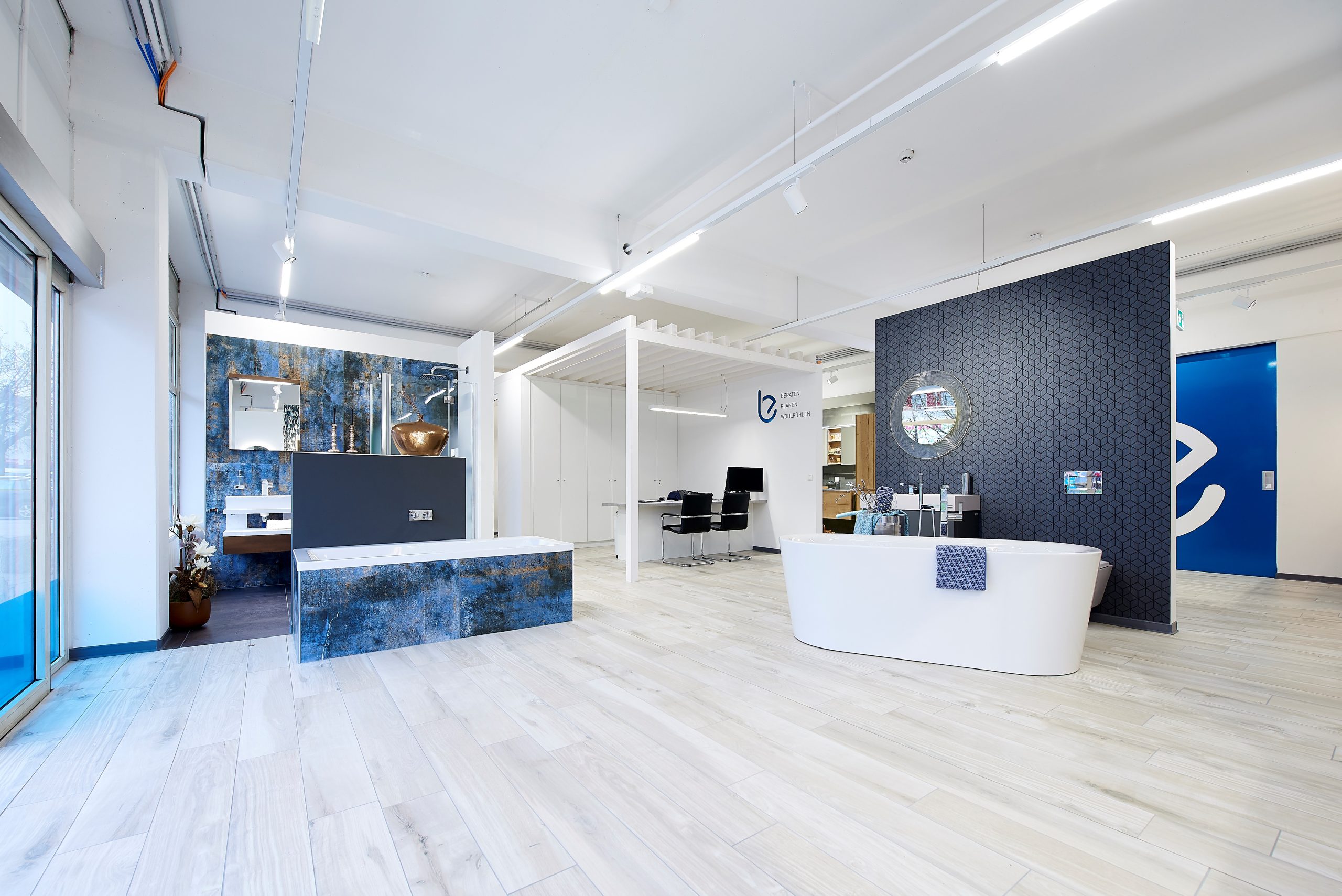 Inspirierende Schauräume mit unzähligen Badezimmer-Ideen, wo Sie Oberflächen berühren und Farben erleben können, warten auf Sie.